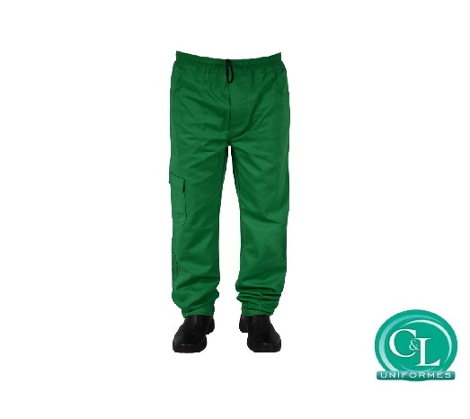 Calça em Brim Operacional Reforçada Verde Com Elástico Total