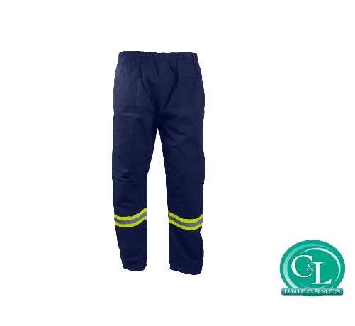 Calça Operacional em Brim Reforçada Azul Marinho com Refletivo Verde