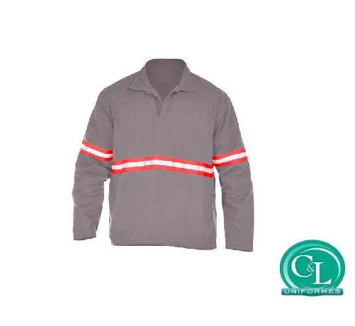 Camisa Brim Gola Italiana Manga Longa cinza com Refletivo Laranja