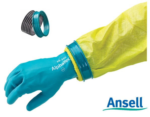 Innovative design utilising the latest polymer technology. Works with a wide variety of chemical glove thicknesses. Ribbed cone and collar for secure attachment.