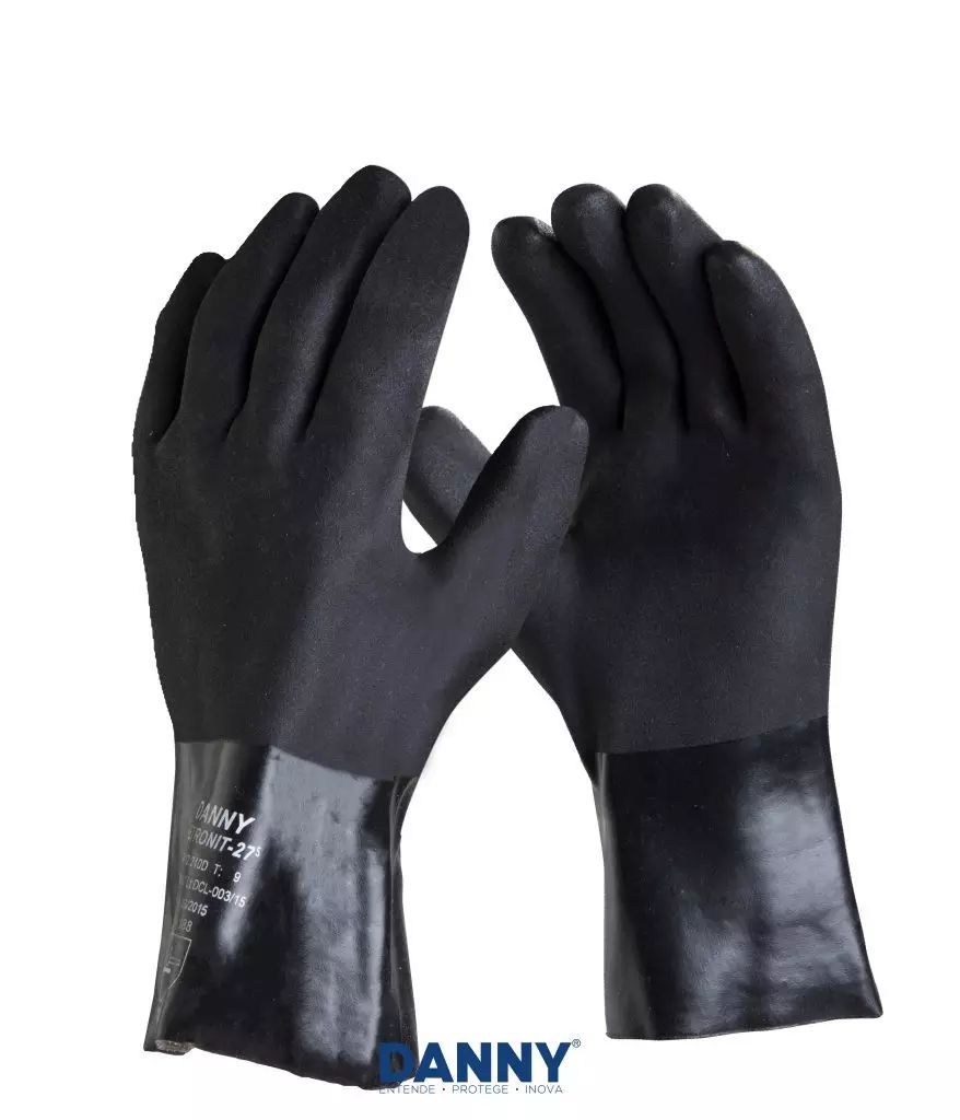 LUVA EM PVC PUNHO 27CM COM SUPORTE TÊXTIL PETRONIT PRETA DANNY
